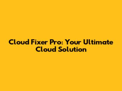 Cloud Fixer Pro: Your Ultimate Cloud Solution