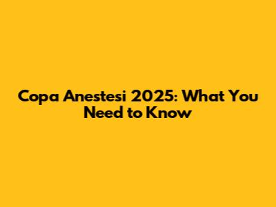 Copa Anestesi 2025: What You Need To Know