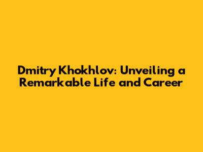 Dmitry Khokhlov: A Deep Dive Into His Life And Achievements