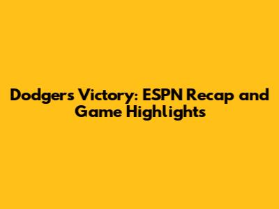 Dodgers Victory: ESPN Recap And Game Highlights