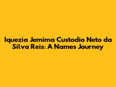 Now, let's put it all together. "Iquezia Jemima Custodio Neto da Silva Reis" is a beautiful combination of a rare first name, a biblical middle name, and a set of surnames with Spanish and Portuguese origins. It is like a blend of uniqueness, history, and family heritage. The name reflects individuality, faith, and a deep connection to ancestry. The choice of "Iquezia" suggests a desire for uniqueness, while "Jemima" connects the individual to a legacy of faith and tradition.