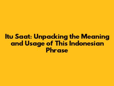 Itu Saat: Understanding The Indonesian Phrase
