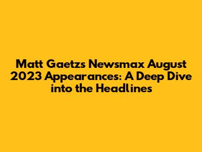 Hey everyone! Let's dive into the buzz surrounding Matt Gaetz and his appearances on Newsmax during August 2023. We're going to break down the key topics, explore the context, and give you a solid overview of what he was talking about. This is your go-to guide to understanding the news and what it could mean. Ready? Let's go!