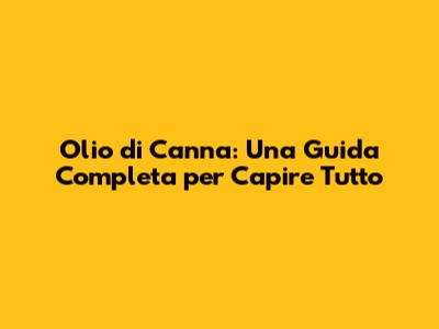 Olio Di Canna: Guida Completa