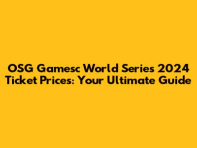 Understanding OSG Gamesc World Series 2024 Ticket Price Factors