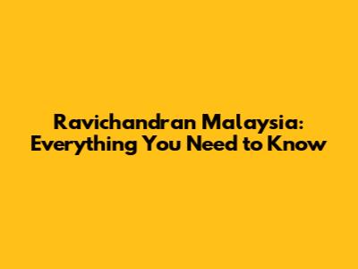 Ravichandran Malaysia: Everything You Need To Know